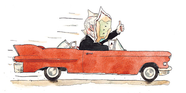 Harpers: The Wrecking Crew – How a gang of right-wing con men destroyed Washington and made a killing. The author of “What’s the Matter with Kansas,”Thomas Frank’s essay on the professionalism of the wingnuts and how they’re sustained by the extraordinary profits to be made in DC as conservatives privatize government services and commodotize government favors.I recommend the essay and Frank’s earlier book. Reminds me of a very spirited conversation with one of our cousins this morning. He is a libertarian and imagines the GOP best represents his interests. Completely stumped when I asked if our country or this world was better off as a result of the last 7 years’ GWB administration. Also, admits that his perspective is informed solely by how government does or doesn’t encroach on him and his family. He’s not especially interested in healthcare, education or housing for others. Cited a lowering of the speed limit as something that would be especially upsetting. Well . . . we agreed we were motivated by different principles. Posted from my blackberry (via I-35)
