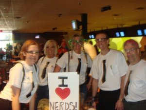 What’s a party without a balloon guy – especially when participants are encouraged to bring their families. Ernst & Young sponsors the kids bowling lanes. You see kids 2 to 15 bowling and having fun, though admittedly the older kids mostly played pool, had their cards read, face painted and hung out.