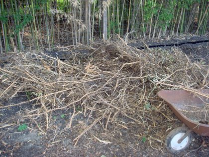 (Community Matters) Well, the rhizome barrier is in place against the south and east boundaries of the back yard. I had no idea the root system would continue to live on once physically cut from the 3 ft wall of bamboo left in place as the south and east walls.