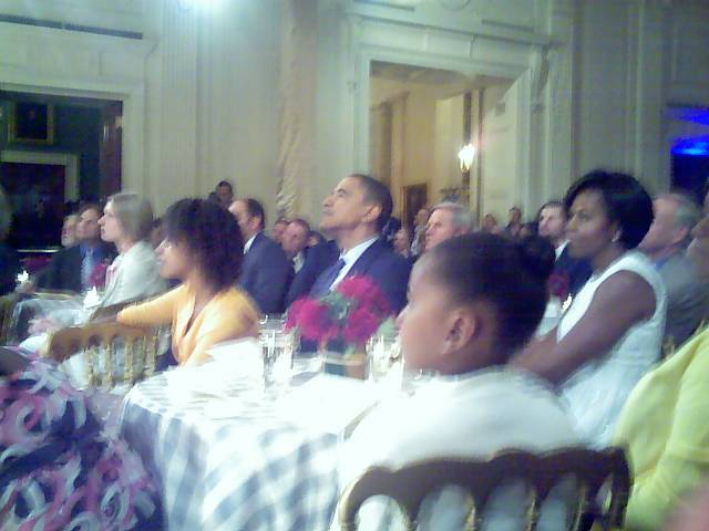 (Community Matters) Amy Rudy emailed me this pic last night from her cell phone. She and Kirk were at the White House (along with our friends Bev Reeves and David Gail) for the concert. Allison Krauss, Charlie Pride and Brad Paisley played