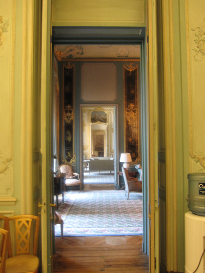 (Community Matters) Ambassador Rivkin grew up the son of a US ambassador and lived in France many times prior to this post. He was CEO of the Jim Henson Company before his unanimous confirmation as President Obama’s ambassador to France. His chief of staff, Daniel Dozier, is a friend and gave us a tour of the residence this morning.