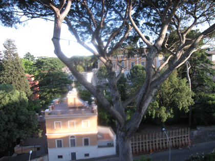 through the trees is the official Academy building where fellows meet, even reside – hmm, a fellowship in Rome . . . do I know any deserving artists? hmm . . . 🙂