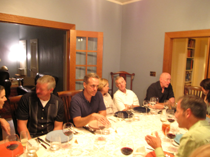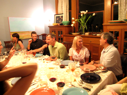 Grilled Texas quail & beef heart skewers, one of the best mixed greens salads ever (w/ avocado, queso fresco & a lime-cilantro dressing), shrimp ceviche, striped bass seafood stew in coconut broth, Shiner Bock marinated steak, chili rubbed pork ribs, garlic sausage & El Ray chocolate mousse.  Great wines and their signature cocktails – Peruvian & Chilean pisco sours, fig & basil martinis & Sombra Ahumados (mescal, cointreau, chicha morada and lime). All had by Cindi & Bill Bock, Kip Keller & Michael Barnes, Diane Land & Steve Adler, Julie Thornton, Carla & Jack McDonald, Amy & Kirk Rudy, Amy Grace Tharp & Doug Ulman.