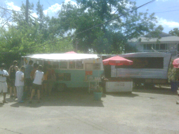 (Community Matters) I’ve been meaning to stop in at Franklin BBQ ever since Stacey Franklin helped Meg Schwartz cater a dinner at our house not too long ago. Have actually tried a few times but they run out of BBQ quick. Today I arrived before 11 and was the 29th person in line, when I left at 11:40 from picking up my to go order, there were at least 60 people in line. They are located on the northbound I-35 access road, on Concordia which is between 32nd and 38th. Stacey’s husband Aaron Franklin runs the operation, ably assisted by a very affable fellow, John.