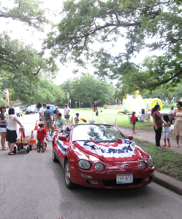 (Community Matters) Much fun this morning at the Aldridge Place 4th of July bash – face painting, moon walks, swimming, games, a parade – donuts and watermelon! Met some new neighbors (the event includes North University) and reconnected with some old.