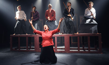 (Community Matters) Evidently Steven’s good karma allowed us to score really great seats (returns) to one of the few remaining performances of Song of the Goat Theatre’s Macbeth at London’s Barbican Theatre. It’s quite unconventional – think beautiful athletes and voices of an accomplished compline choir meet Shakespeare.