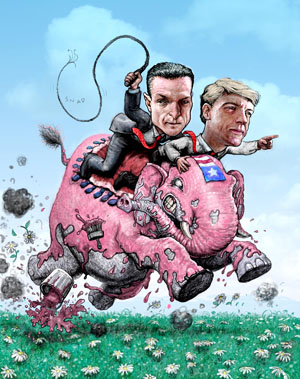 Barron [GOProud Chmn] and LaSalvia [GOProud Exec Dir] are loud and proud – despite the fact that they may not be popular in the rest of the gay political world. But sometimes the taunts from the left even get to them. Turning serious, LaSalvia says, ”You can question our tactics, you can question some of the stunts we pull and some of the things we say, but nobody should question our motives – because we’re gay Americans, too.”