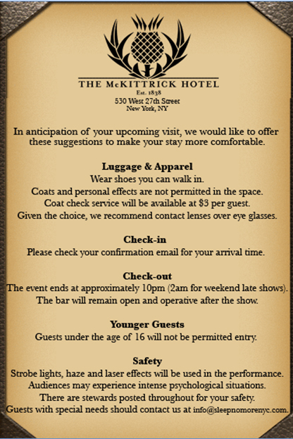 (Community Matters) prep for my transfer to the McKittrick Hotel this evening