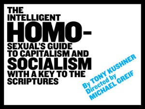 (Community Matters) The Intelligent Homosexual’s Guide to Capitalism and Socialism with a Key to the Scriptures – saw last night at Public Theatre with my friend Andy Tobias. It “explores revolution, radicalism, marriage, sex, prostitution, politics, real estate, unions of all kinds and debts both unpaid and unpayable.” It’s not really a “gay play”, but I like that homophobes are likely to deny themselves the pleasure of seeing it.