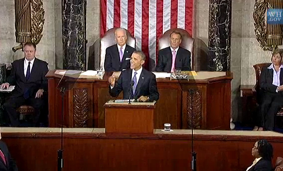 It appears everyone from both sides of the aisle stood up in agreement for the last phrase, except most obviously Speaker Boehner.