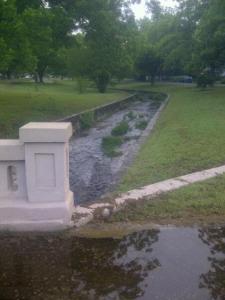 (Community Matters) I happened to take a picture of Waller Creek in our neighborhood park the day we left. Last night, Micah King sent me a picture after yesterday’s rains