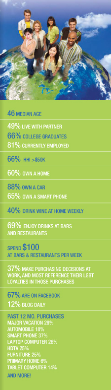 - 73-88% of gay men and lesbians say that whether or not a company sponsors LGBT charities influences their purchasing decisions