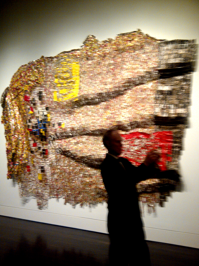 Loved launching at the museum, I haven’t toured there in way too long. Collectors and supporters loaned many of their works. Richard Hartgrave and Gary Cooper loaned a Michael Tracy. I especially liked City Plot by El Anatsui, a tapestry of aluminum liquor bottle caps and copper wire. It