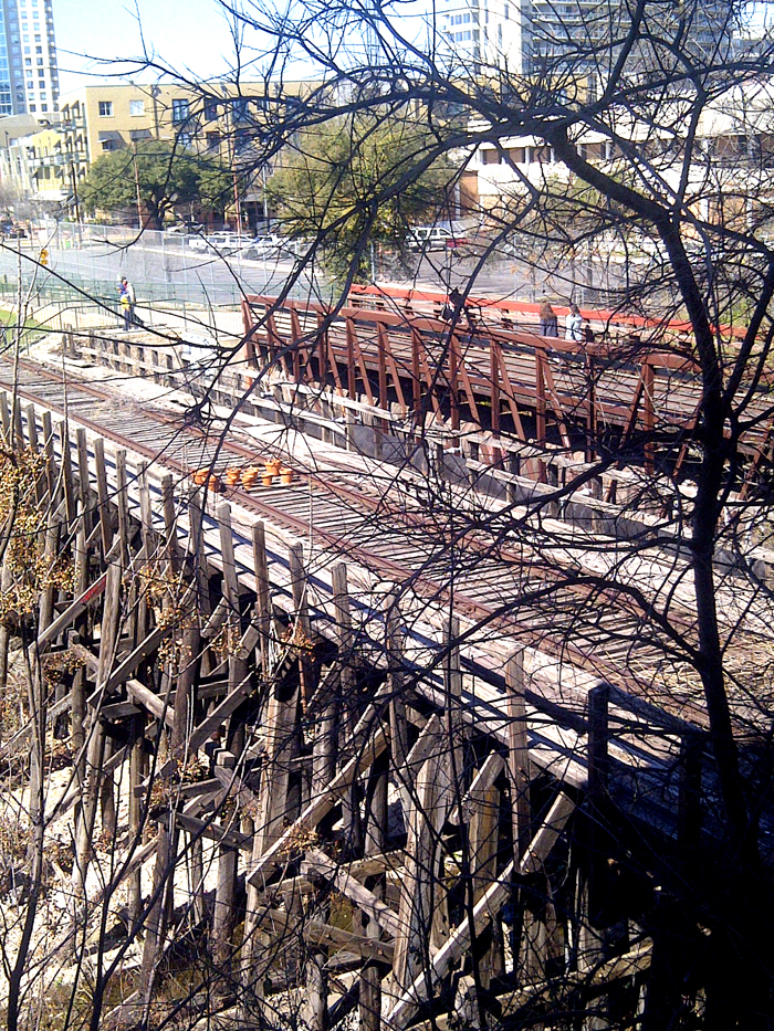 (Community Matters) I noticed this decaying segment of a railroad bridge behind the Austin Music Hall. It’s quite beautiful. I hope it’ll be preserved as a segment of Austin’s own Highline – ours perhaps dispersed and in bits. I’m hoping the bridge from the Fairmont to the Convention Center can be another.