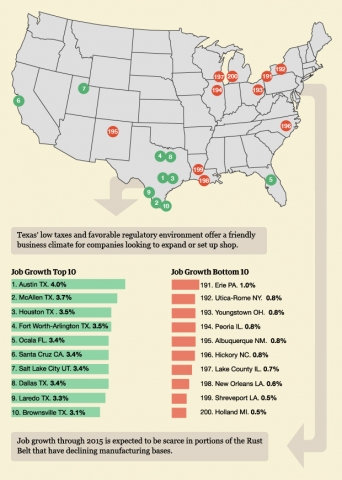 Forbes: Austin earned No. 1 status thanks to an annual job growth of 4 percent, a median income just under $60,000, and an unemployment rate of 5.5 percent, while also wooing companies like Facebook, Apple, AT&T and, of course, Google Fiber.