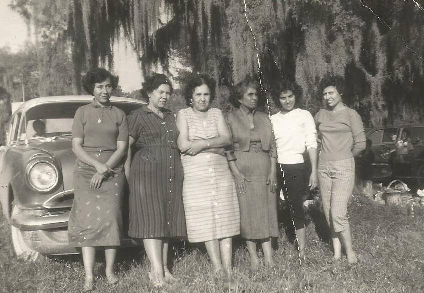 This was taken in April 1959 L-R: Don’t know the 1st lady ?, my aunt Margaret Ramirez, my grandma Beatrice Sepulveda, Nachita (uncle Santos Cuevas mother), aunt Mary Ramirez & aunt Stella Ramirez