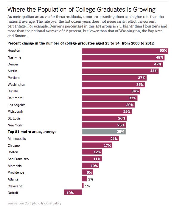 • as a percent of our population, Austin ranks 6th with 40.8% of its population between 25 – 34 w/ at least a bachelor’s degree.